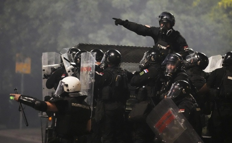 Cảnh sát trấn áp bạo loạn ở Serbia. Ảnh: Aljazeera