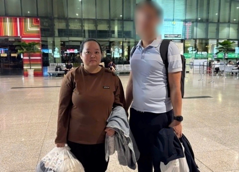 Đối tượng Nguyễn Thị Hường bị lực lượng CSĐT Công an tỉnh áp giải tại khu vực sân bay - Ảnh: Công an Quảng Ninh