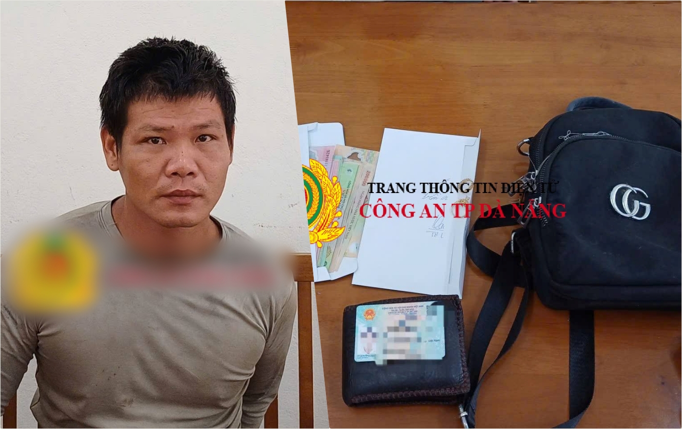 Trần Như Ánh (trái) và tang vật vụ cướp - Ảnh: CA Đà Nẵng