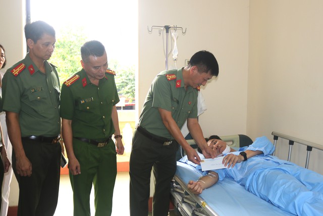 Phó Giám đốc Công an tỉnh thăm cán bộ Công an phường Phan Đình Phùng bị thương (Ảnh: Công an Thái Nguyên).