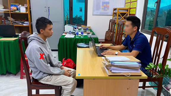 Đối tượng Nguyễn Duy Quang tại cơ quan Công an (Ảnh: Công an Lâm Đồng).