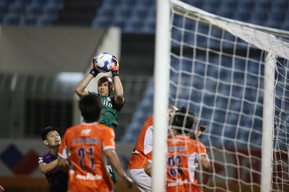 Trợ lý HLV Thanh Bình của Đà Nẵng vào bắt chính khi cả 2 thủ môn của đội đều bị chấn thương