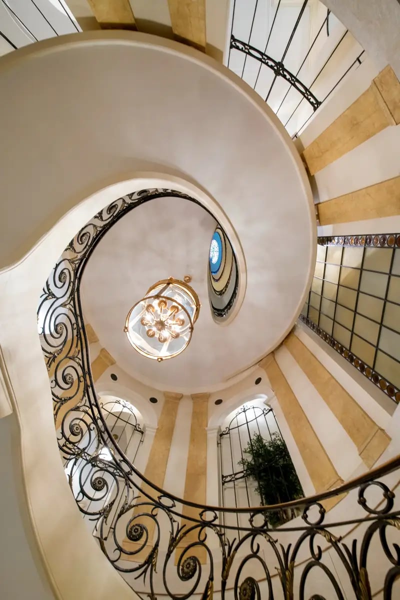 Căn biệt thự này thu hút với lối kiến trúc Beaux-Arts, mỗi chi tiết từ mặt ngoài cho đến nội thất đều được chăm chút tỉ mỉ, như một bức tranh sống động về sự sang trọng cổ điển. Khi bước vào, mắt bạn lập tức bị hút vào cầu thang xoắn dẫn tới tầng năm, đi kèm thang máy hiện đại nhưng vẫn giữ được vẻ duyên dáng cổ điển.