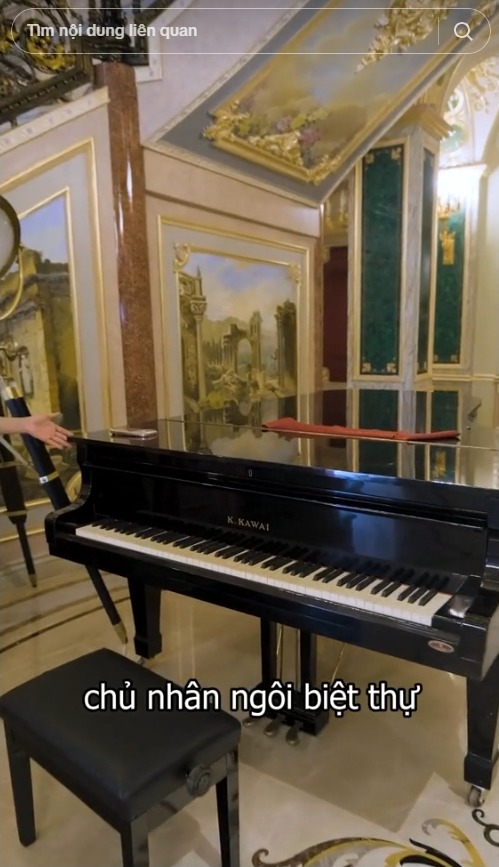 Một vài chi tiết nội thất trong tòa lâu đài. Trong đó còn có một chiếc đàn piano cổ trị giá lên tới 1 tỷ đồng. (Nguồn: @hagiang3939_tanphat).