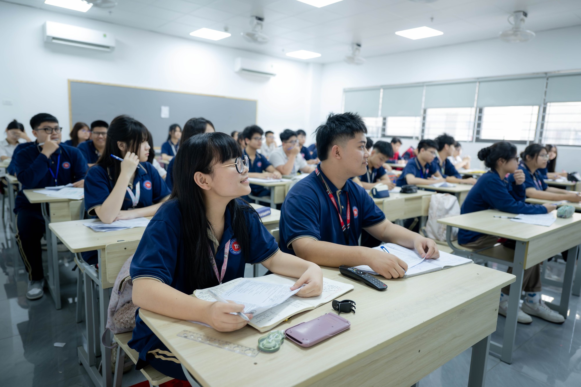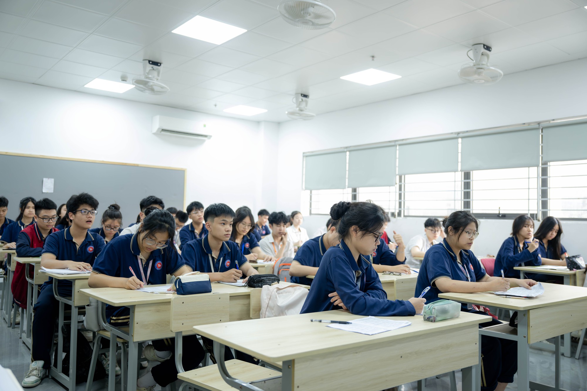 Hiện trường có 45 phòng học, được trang bị bàn ghế đôi tiêu chuẩn, điều hòa, TV, bảng từ chống lóa và có trợ giảng