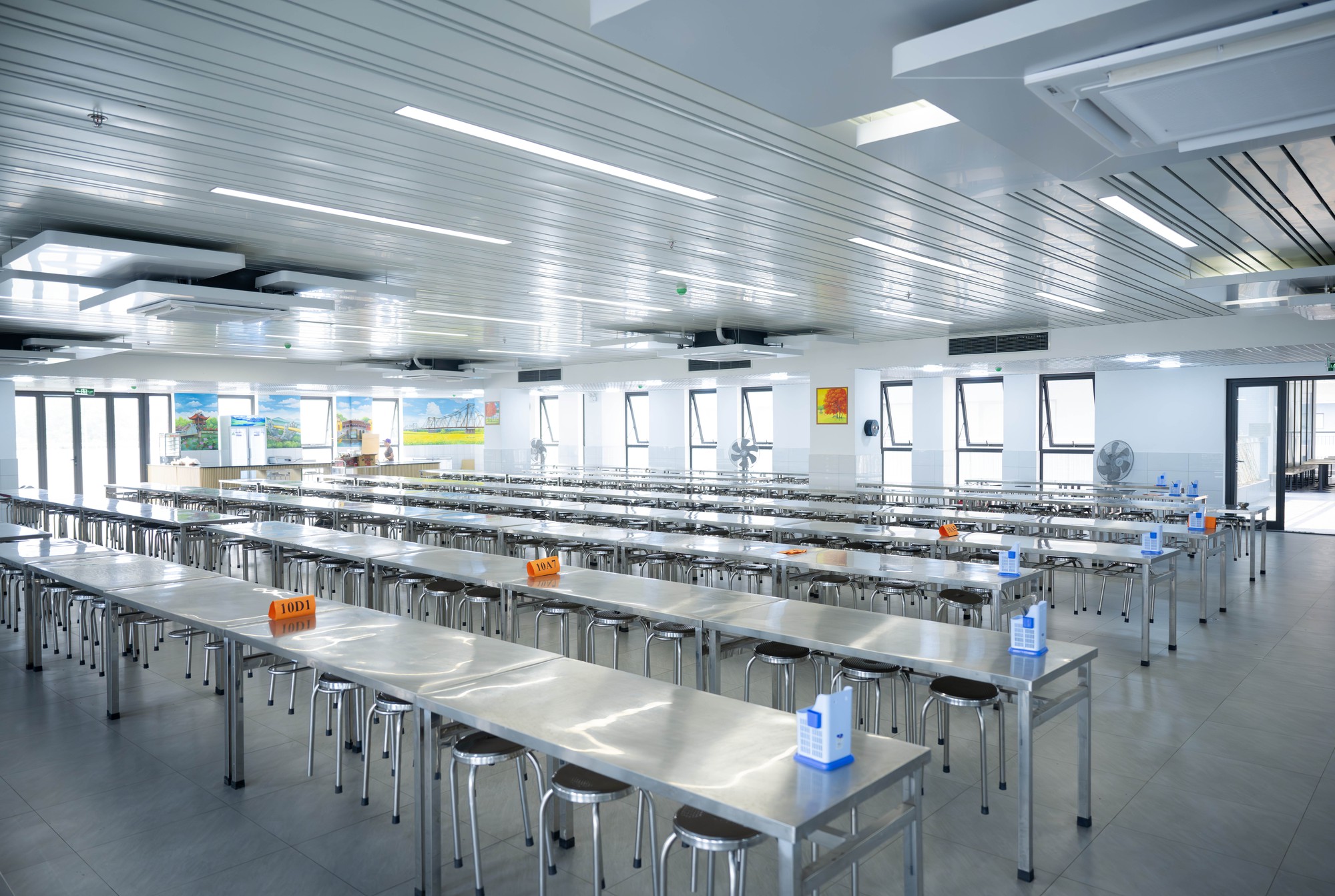 Khu căng tin có sức chứa khoảng 500 người, sử dụng bàn ghế inox