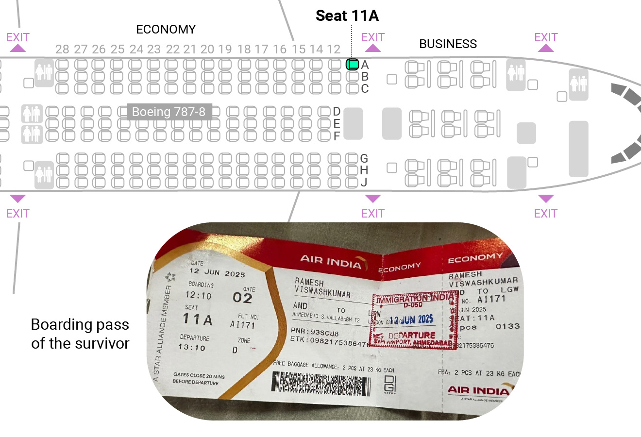 Vị trí ghế 11A và vé máy bay của hành khách may mắn sống sót