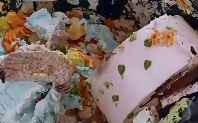 Clip gạt bỏ hết phần kem trang trí bánh sinh nhật vào thùng rác của một cô gái đang thu hút sự chú ý của cư dân mạng