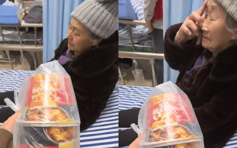 Nhân vật chính trong câu chuyện là một bà cụ đã sinh 8 con trai và 2 con gái. Tuy nhiên, cảnh tượng tuổi già của bà lại rất xót xa. Khi nhập viện, bà thậm chí không có nổi một bữa cơm nóng. Do sức khỏe yếu, bà không thể xuống căng-tin mua đồ ăn nên đành sống qua ngày bằng mì gói. Khi được hỏi vì sao, bà chỉ nói đơn giản: "Vì cái này rẻ".