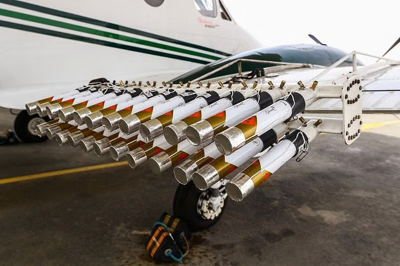 Pháo sáng hút ẩm được gắn lên một máy bay trong chuyến bay gieo mây do Trung tâm Khí tượng Quốc gia (NCM) điều hành.