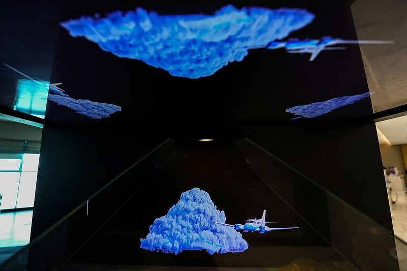 Ảnh 3 chiều giải thích về quá trình gieo mây tại Trung tâm Khí tượng Quốc gia ở Abu Dhabi.