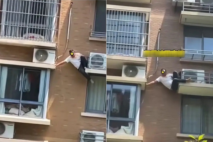 Theo trang Sohu, một đoạn clip gây sốc đang lan truyền rộng rãi trên mạng xã hội, ghi lại cảnh một người đàn ông hoảng loạn đu bám bên ngoài tòa nhà cao tầng. Người đàn ông la lớn cầu cứu trong tình thế "ngàn cân treo sợi tóc", mồ hôi nhễ nhại khi cố gắng bám víu vào lan can ban công.