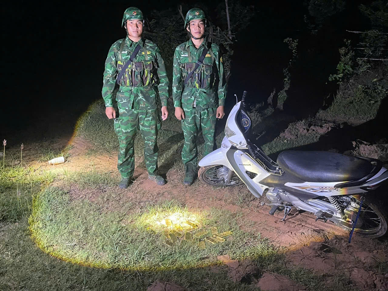Khi phát hiện lực lượng làm nhiệm vụ, các đối tượng lợi dụng trời tối bỏ chạy về bên kia biên giới, để lại hiện trường 1 xe máy, 18 miếng kim loại màu vàng, hình chữ nhật, kích thước khoảng 11,5 x 5,1 cm, tổng trọng lượng khoảng 18 kg, được xác định là vàng 9999, trị giá trên 51 tỷ đồng.