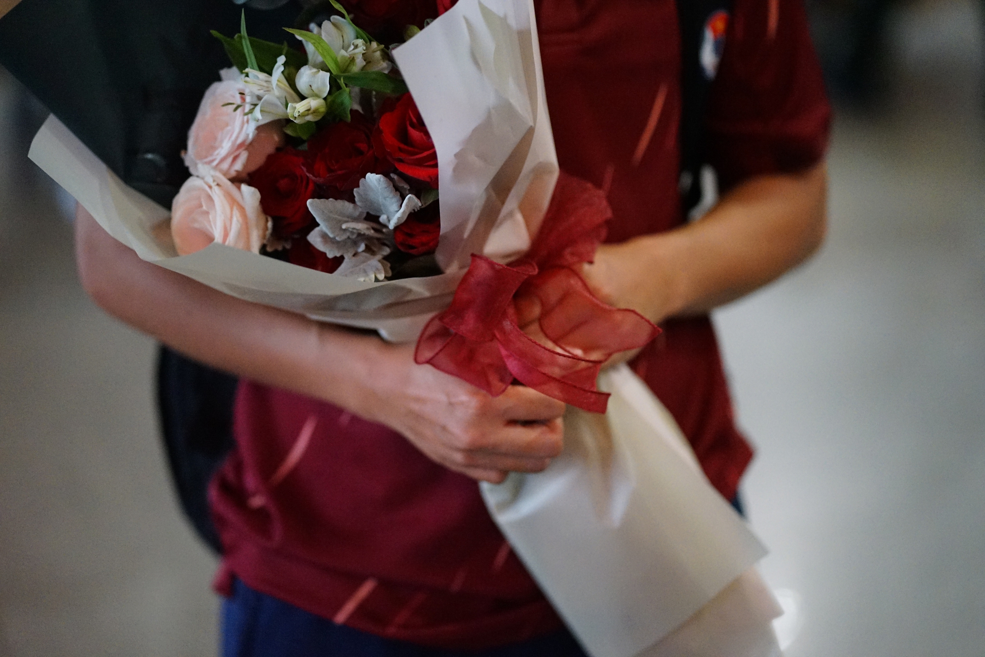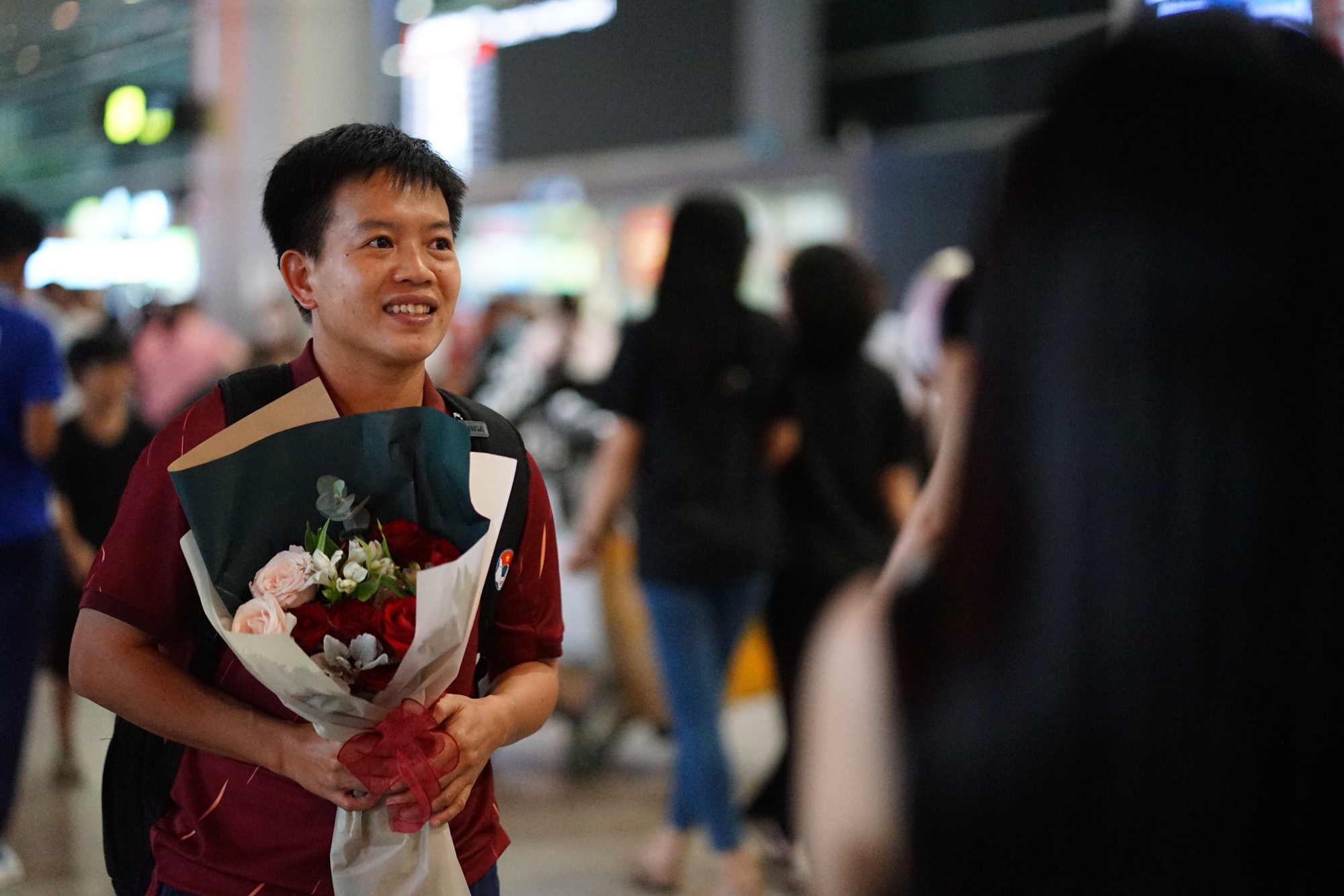 Đội trưởng Huỳnh Như tươi rói, Huỳnh Như chia sẻ: "Được thầy cô và người hâm mộ đến đón Như cảm thấy rất vinh dự và ấm áp".