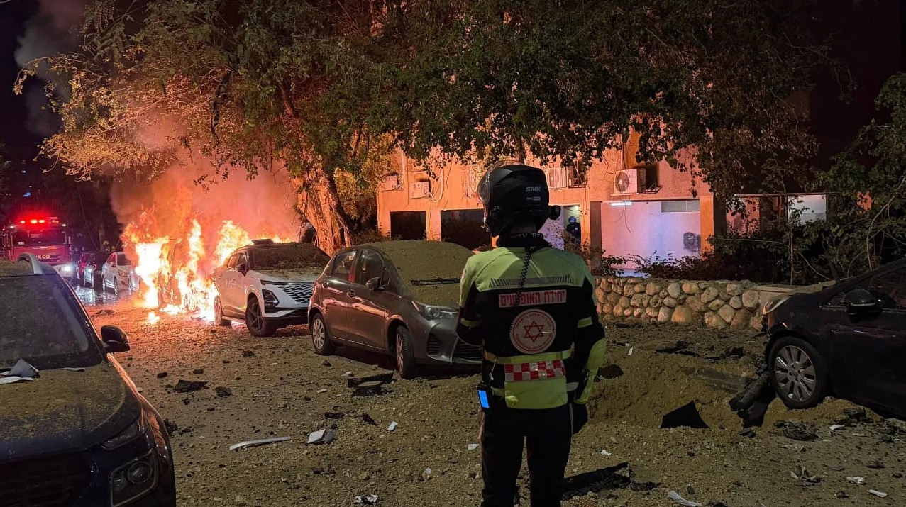 Lực lượng cứu hộ khẩn cấp Magen David Adom (Israel) cho biết hai trường hợp tử vong xảy ra ở Ramat Gan, một thành phố gần Tel Aviv, trong một vụ tấn công bằng tên lửa của Iran. Ảnh: Jerusalem Post