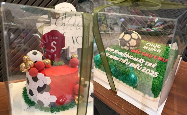 Cận cảnh hai chiếc bánh kem chúc mừng dành cho Văn Hậu - Đình Bắc hôm ấy (Ảnh: Phạm Tiến Dũng)