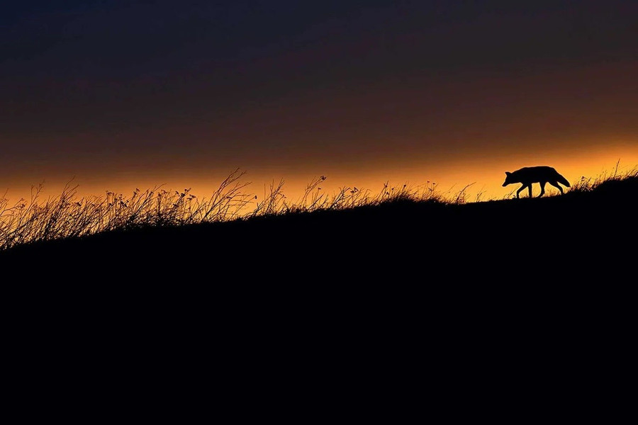 Trong hạng mục nhiếp ảnh gia trẻ, Leo Dale – 17 tuổi, đến từ Sonoma, California – đã ghi lại hình ảnh một con sói đồng côi tại Khu bảo tồn Point Reyes National Seashore. Bức ảnh được chụp vào mùa thu năm 2024, khi hoàng hôn nhuộm màu rực rỡ trên bầu trời.
