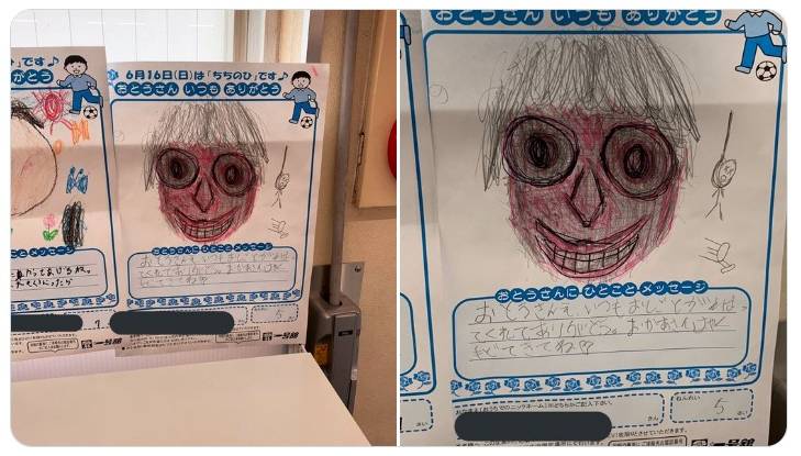 Nhiều địa phương tại Nhật Bản có truyền thống trưng bày những bức “chân dung bố” do trẻ em tự tay vẽ nhân Ngày của Cha. Tuy nhiên, một bức tranh được chia sẻ trên mạng xã hội vào năm 2023 đã khiến nhiều người không khỏi rùng mình vì những chi tiết bất thường xuất hiện trong đó.
