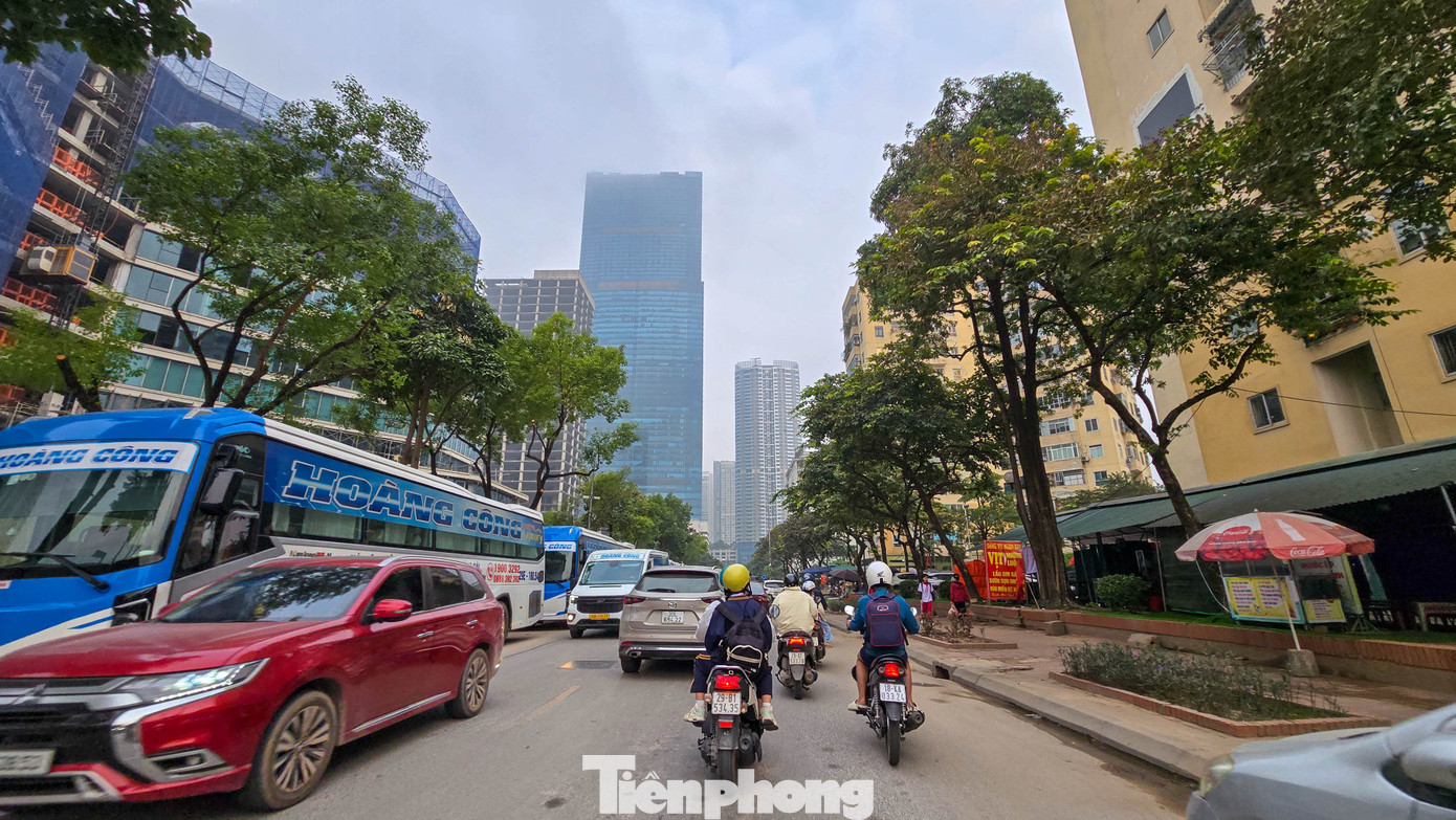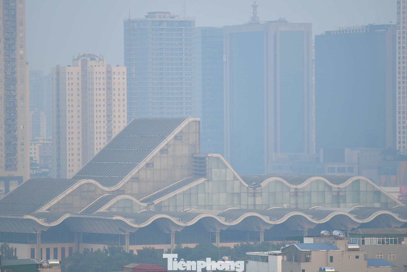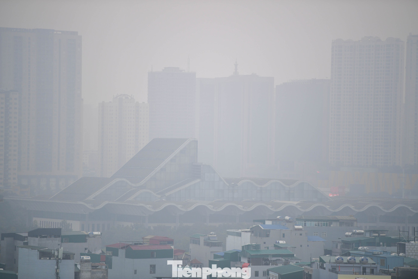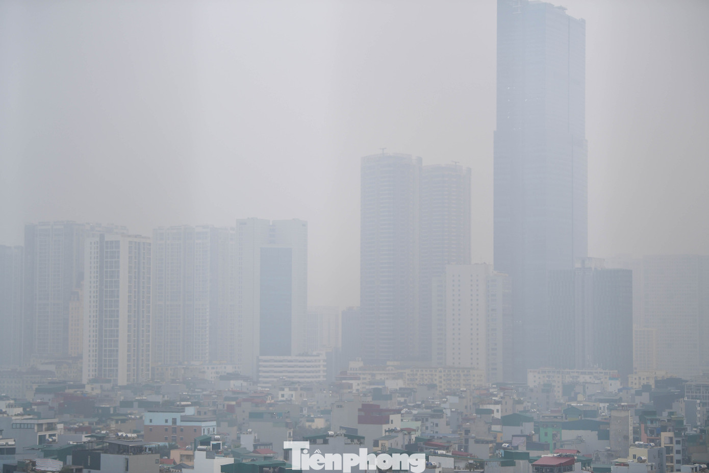 6h sáng, tại nhiều trục đường lớn, tầm nhìn thu hẹp còn vài trăm mét. Những tòa nhà cao tầng thường dễ nhận ra nay chỉ còn hiện lên mờ nhạt, lẫn vào màu trắng xám bao phủ khắp đô thị.