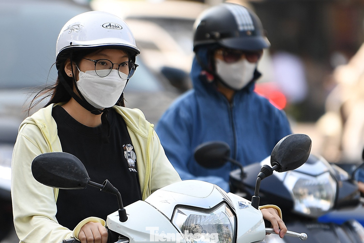 Chị Mai Phương, nhân viên văn phòng tại khu vực Cầu Giấy, cho biết cảm giác khó chịu xuất hiện ngay khi bước ra khỏi nhà. “Tôi đi xe máy hơn 20 phút, về đến cơ quan là mắt cay buốt, cổ họng khô rát. Dù có khó chịu nhưng ai cũng phải đeo khẩu trang kín mít, không dám tháo ra giữa đường”.