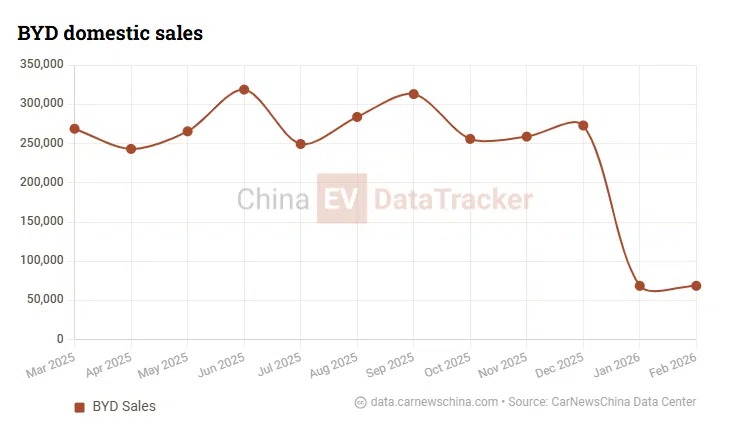 Tình hình doanh số BYD tại thị trường nội địa. Ảnh: China EV Data Tracker