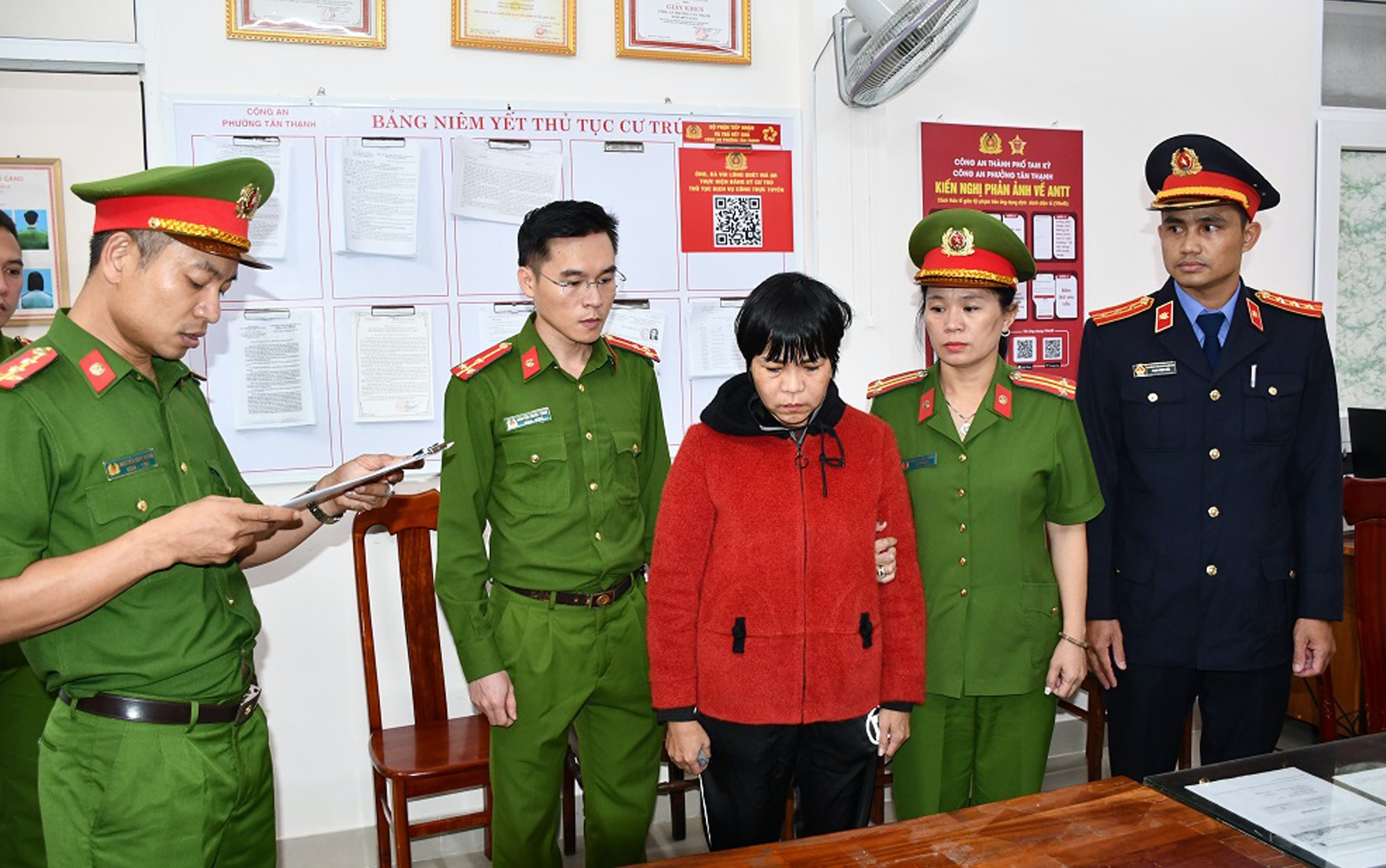Tô Thị Ty Na nghe đọc quyết định khởi tố, bắt tạm giam - Ảnh: CA Quảng Nam