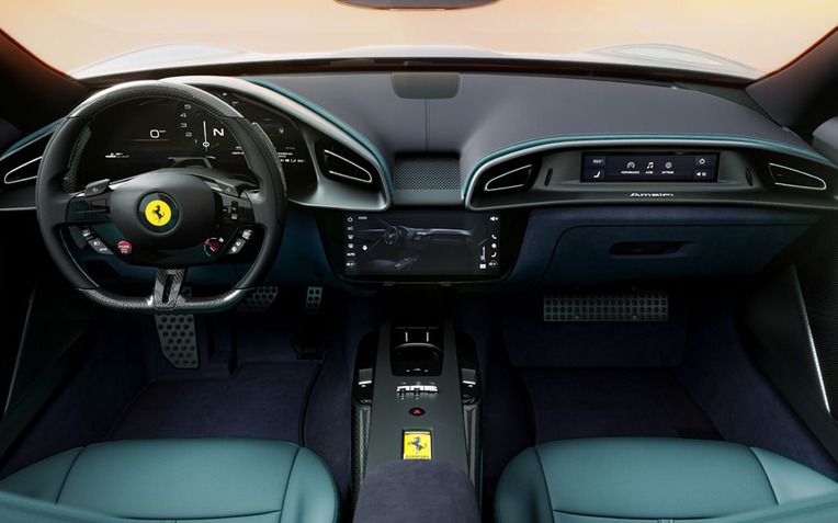 Điểm nổi bật trong nội thất là sự trở lại của các nút bấm vật lý, đặc biệt là cụm điều khiển điều hòa, được đặt phía dưới khu vực màn hình trung tâm. Đây là bước đi ngược lại với xu hướng số hóa đang thịnh hành trong ngành ô tô, nhưng Ferrari khẳng định cách tiếp cận này sẽ giúp người lái thao tác nhanh hơn, thuận tiện và an toàn hơn khi đang vận hành xe ở tốc độ cao.
