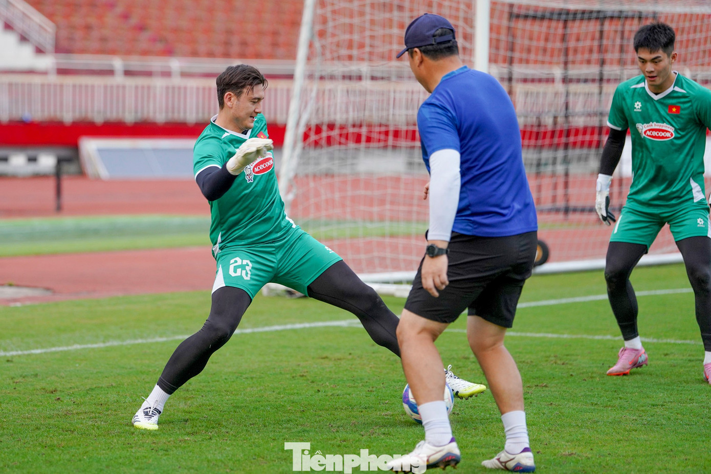 Văn Lâm, sau vài sai lầm đáng tiếc ở lượt đi trên sân Gò Đậu, tỏ ra đặc biệt tập trung. Anh chủ động trao đổi thêm với HLV Lee Won-jae sau mỗi tình huống, điều chỉnh nhịp ra bóng và khả năng chuyền một chạm. Trung Kiên và Văn Việt cũng cho thấy sự tiến bộ rõ rệt, phối hợp nhịp nhàng trong các bài phản xạ chân và phát bóng dài.