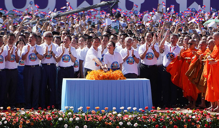 Thủ tướng Campuchia Hun Manet và phu nhân Pich Chanmony tham dự lễ khởi công giai đoạn 1 của dự án kênh đào Funan Techo tại tỉnh Kandal vào ngày 5/8/2024. Ảnh: Khmer Times