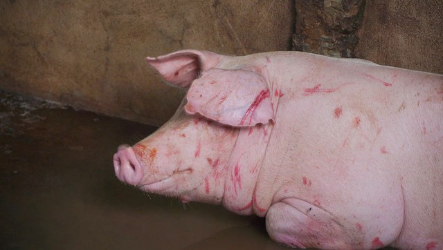 Những chú heo hiện đang được nuôi bên trong chuồng tại cơ sở giết mổ gia công cho Công ty C.P Việt Nam tại Hậu Giang. Ảnh: Báo Lao Động