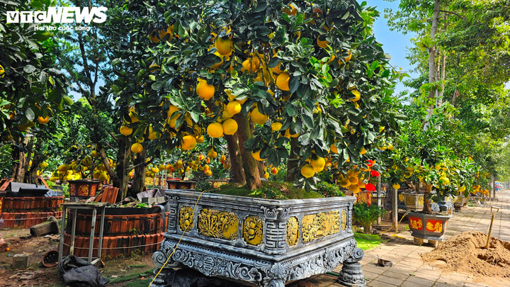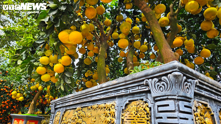 Bên cạnh bưởi Diễn, nhà vườn Thanh Giang còn trưng bày cặp quýt chu sa đến từ Hưng Yên, cao gần 4 m, sai hàng ngàn trái. Quýt có màu cam đỏ rực, nổi bật trong không gian trưng bày và thường được đặt ở những vị trí trang trọng.