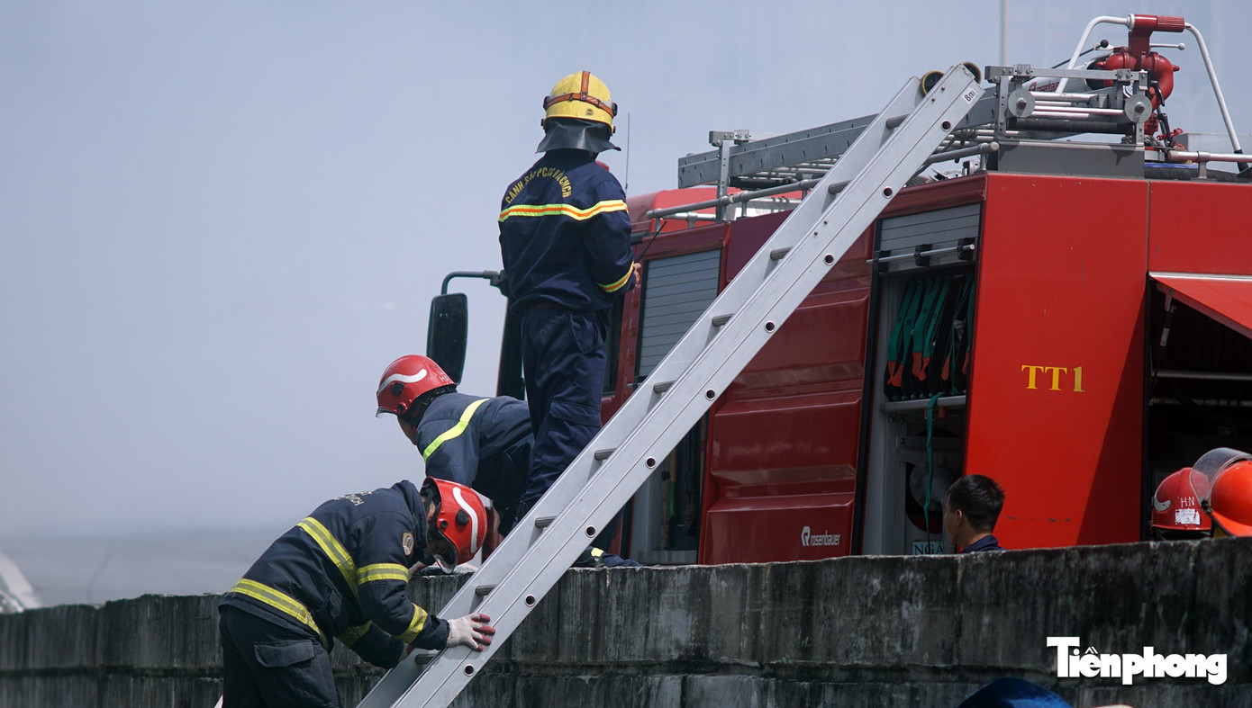 Lực lượng chữa cháy Công an TP Hà Nội triển khai chữa cháy.