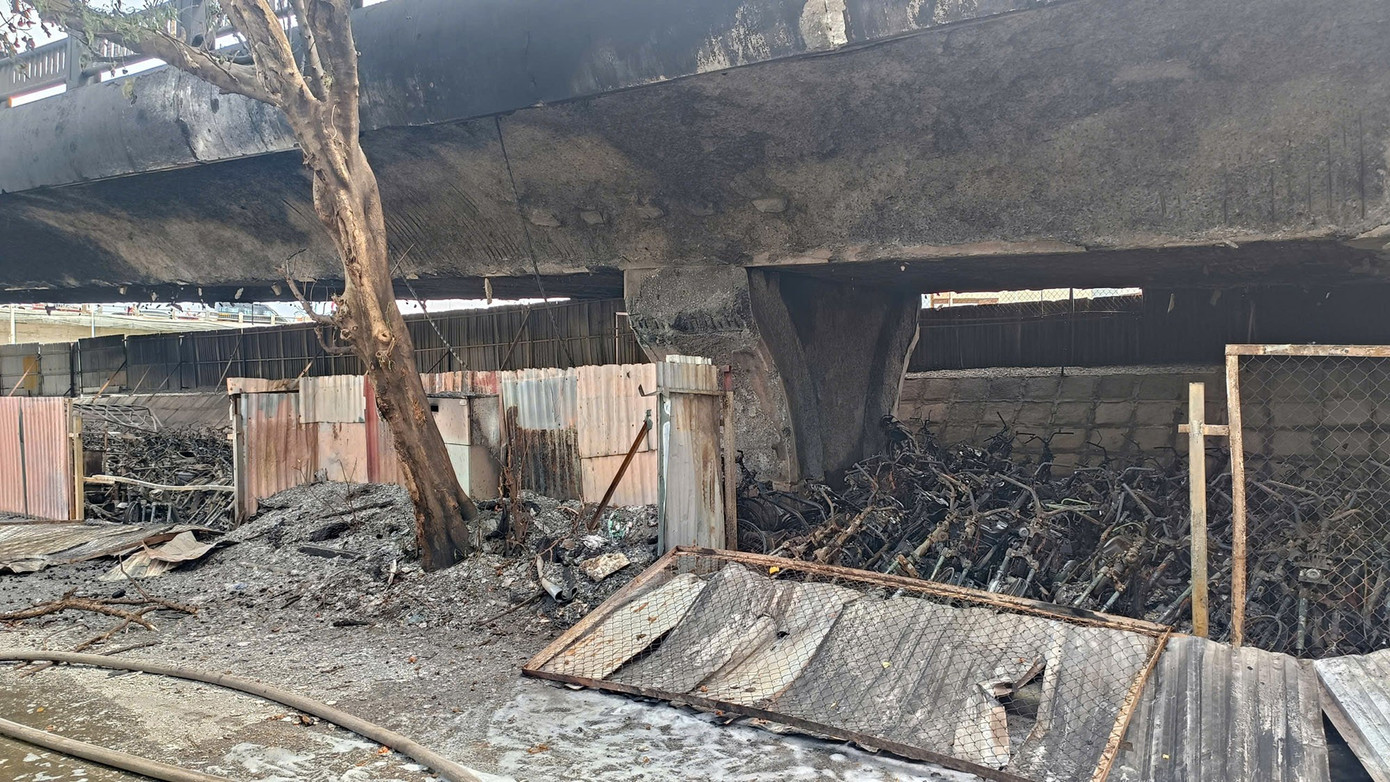 Khoảng 13h cùng ngày, tại bãi xe máy dưới gầm cầu Vĩnh Tuy (Hà Nội) xảy ra hỏa hoạn.