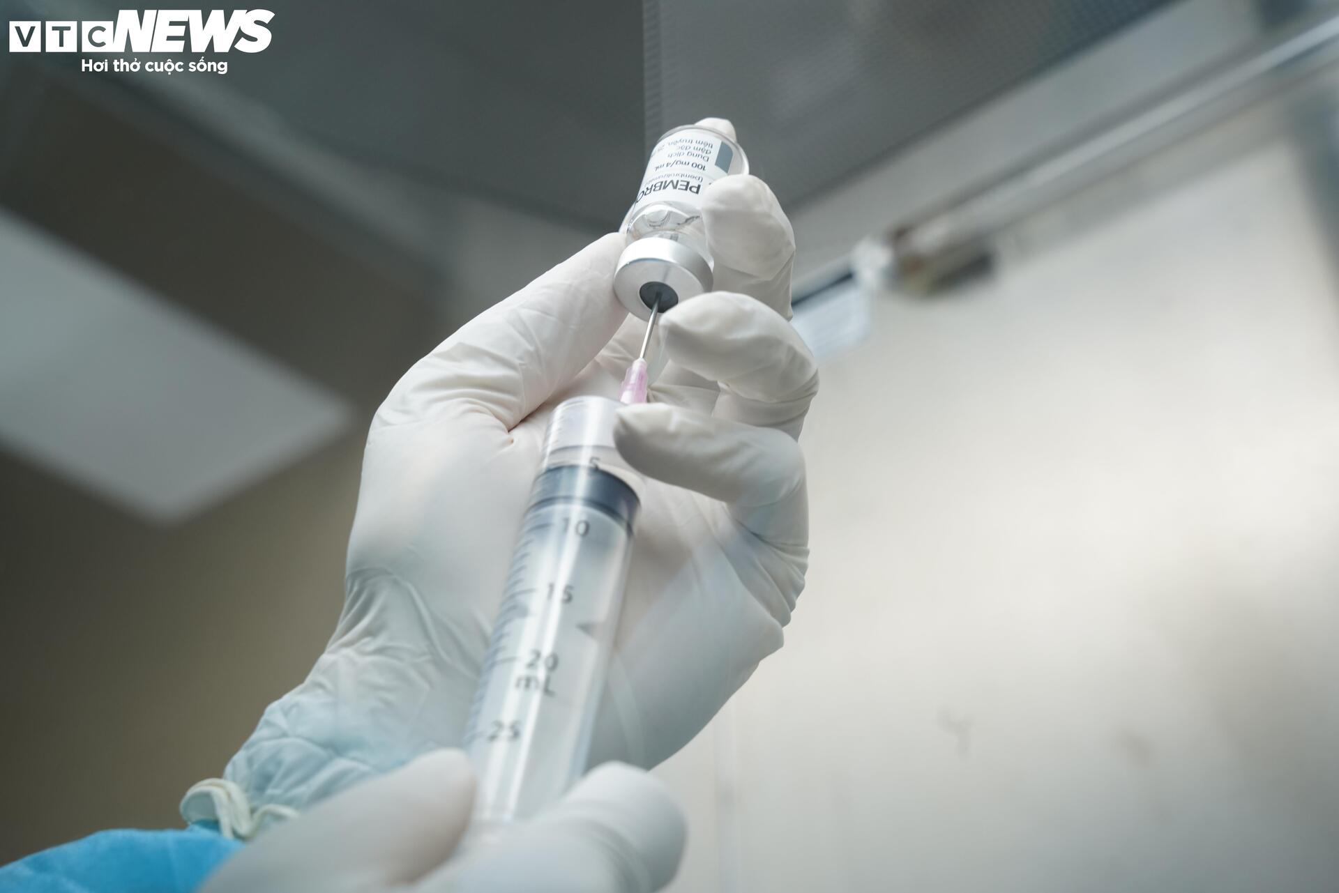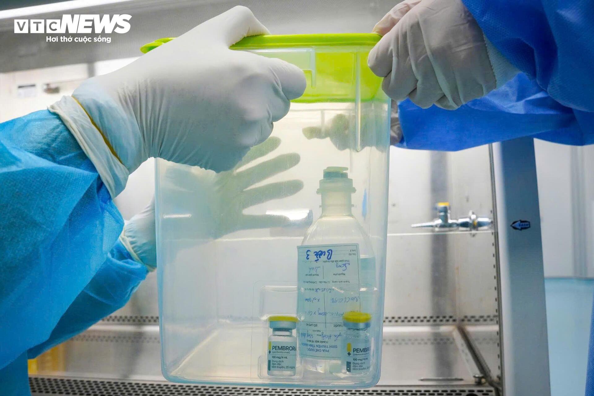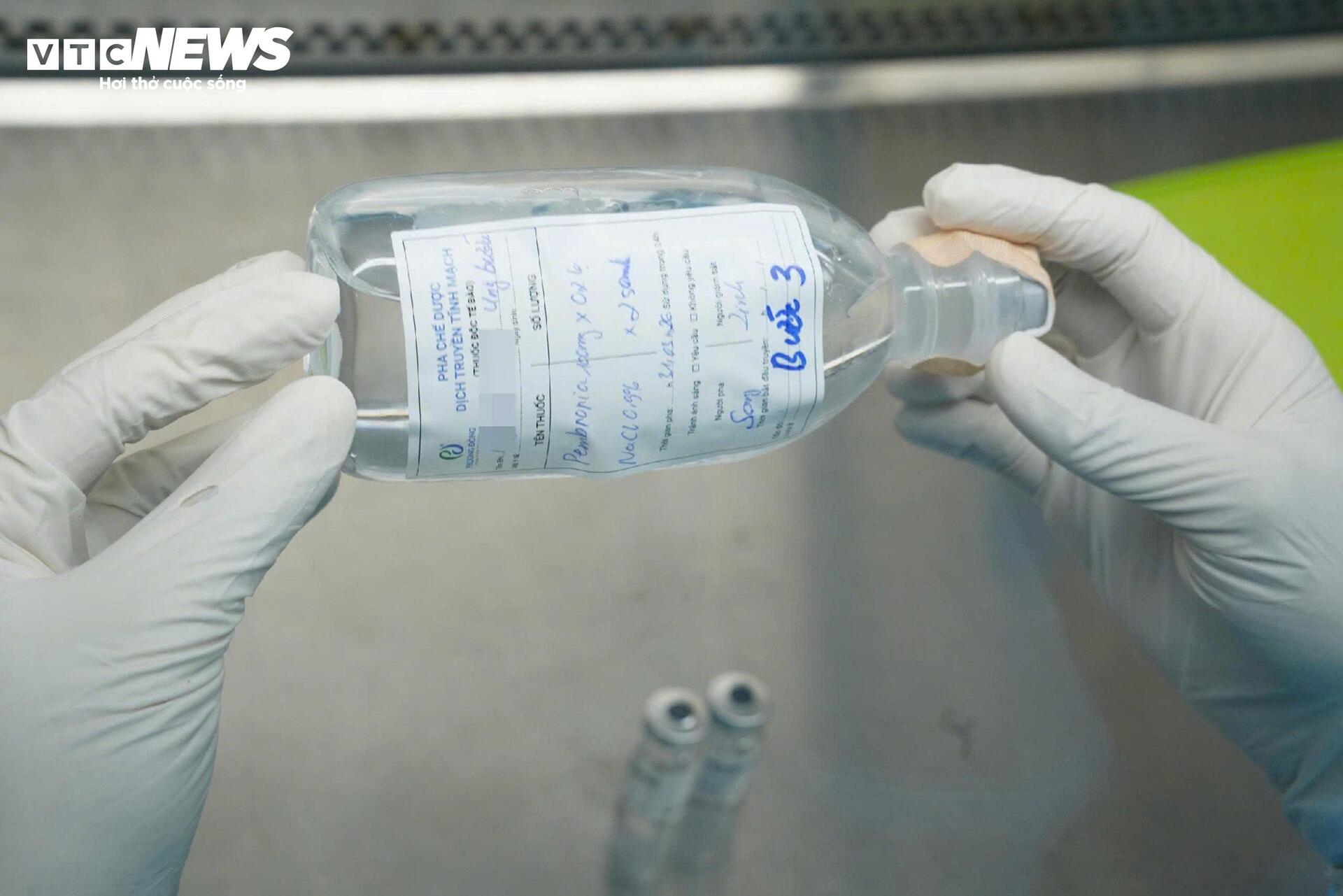 Sau khi hoàn tất pha chế, thuốc được dán nhãn với đầy đủ thông tin về bệnh nhân, liều dùng và thời gian sử dụng. Đây là bước đảm bảo tính chính xác trước khi thuốc được chuyển đến phòng điều trị.