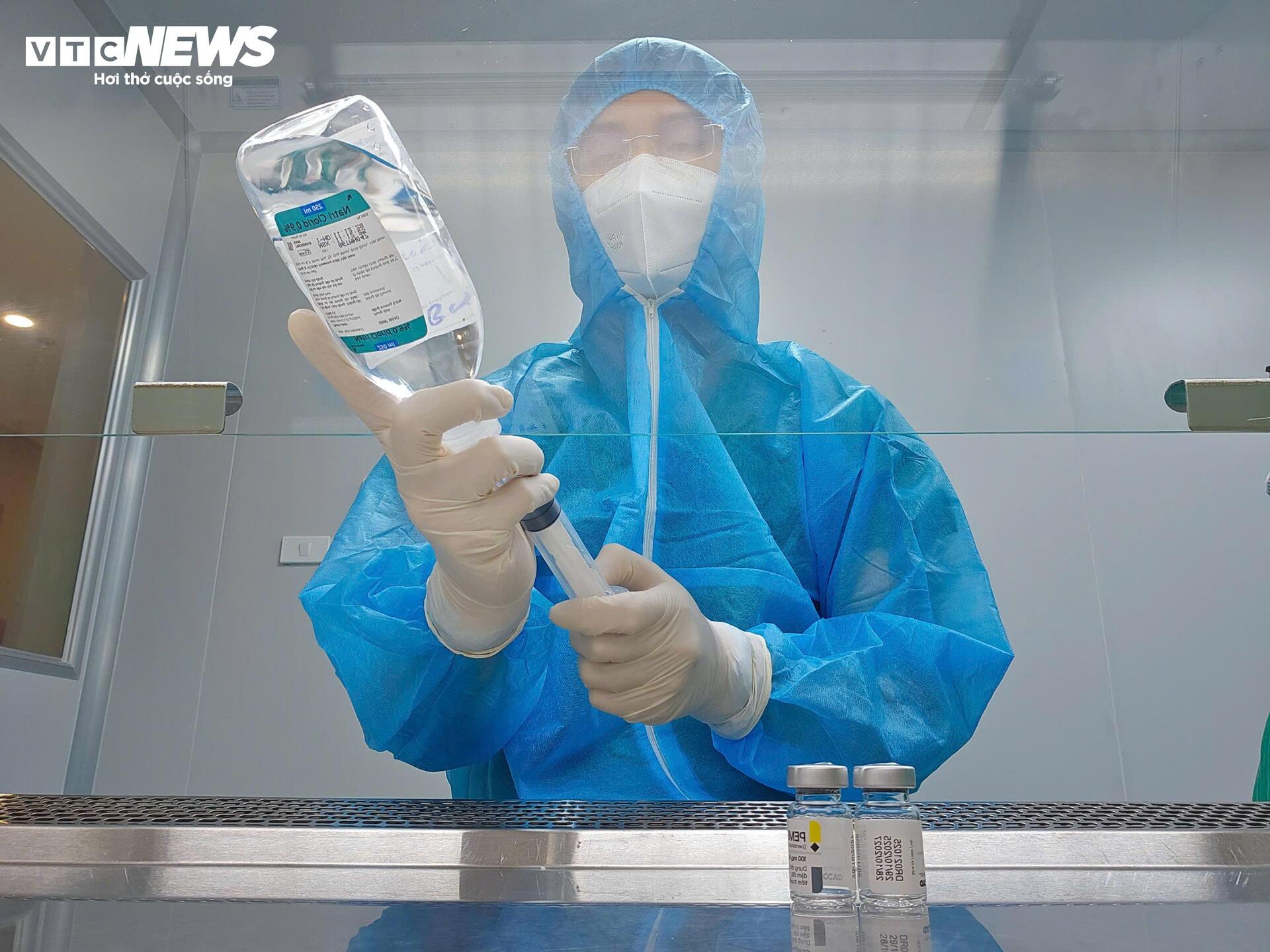 Sau khi tiếp nhận, thuốc được đưa tới tủ hút vô khuẩn để pha chế. Hệ thống này tạo luồng khí một chiều, lọc vi sinh vật và bụi mịn, đồng thời ngăn tác nhân bên ngoài xâm nhập, đóng vai trò “lớp bảo vệ” quan trọng trong kiểm soát nhiễm khuẩn.