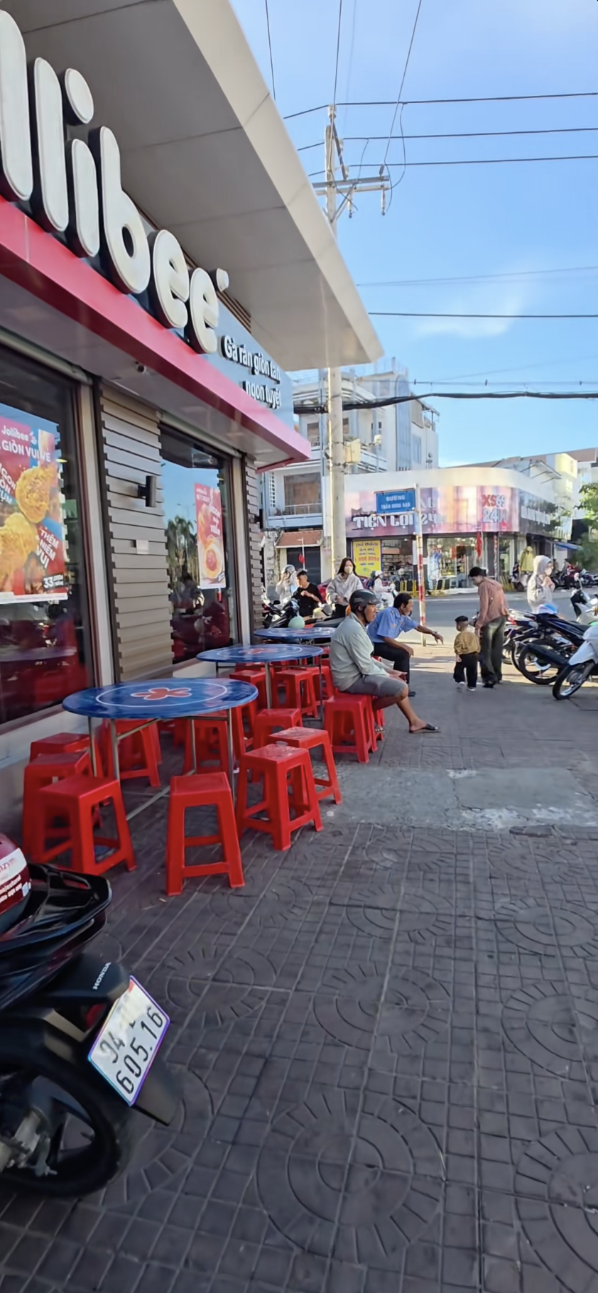 Trong những đoạn video đang lan truyền mạnh mẽ trên mạng xã hội, một chi nhánh Jollibee tại miền Tây đã khiến thực khách không khỏi bất ngờ. Ngay phía trước hiên quán, thay vì những bộ bàn ghế đồng bộ thường thấy, cửa hàng lại bày biện hàng loạt bàn inox tròn và ghế nhựa đỏ san sát nhau.