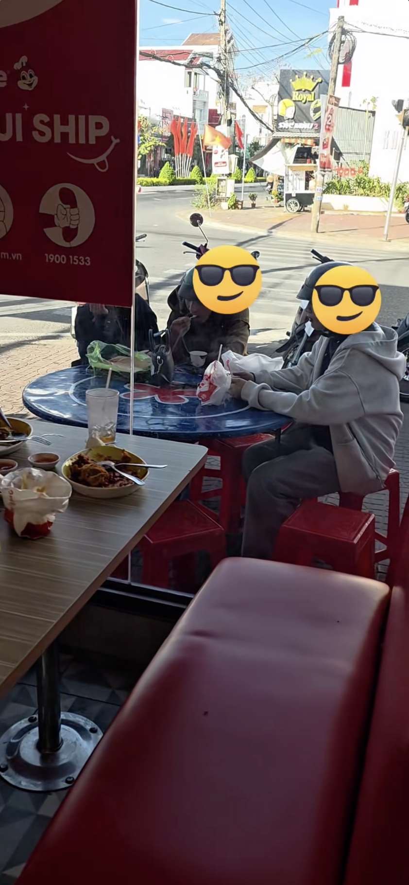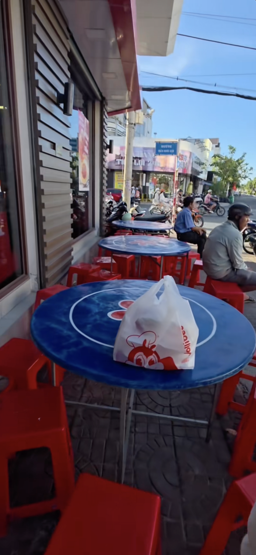 Một chi nhánh Jollibee Cần Thơ khiến nhiều thực khách thích thú với bộ bàn ghế được bày bên ngoài quán. Ảnh: @mybibis.diary