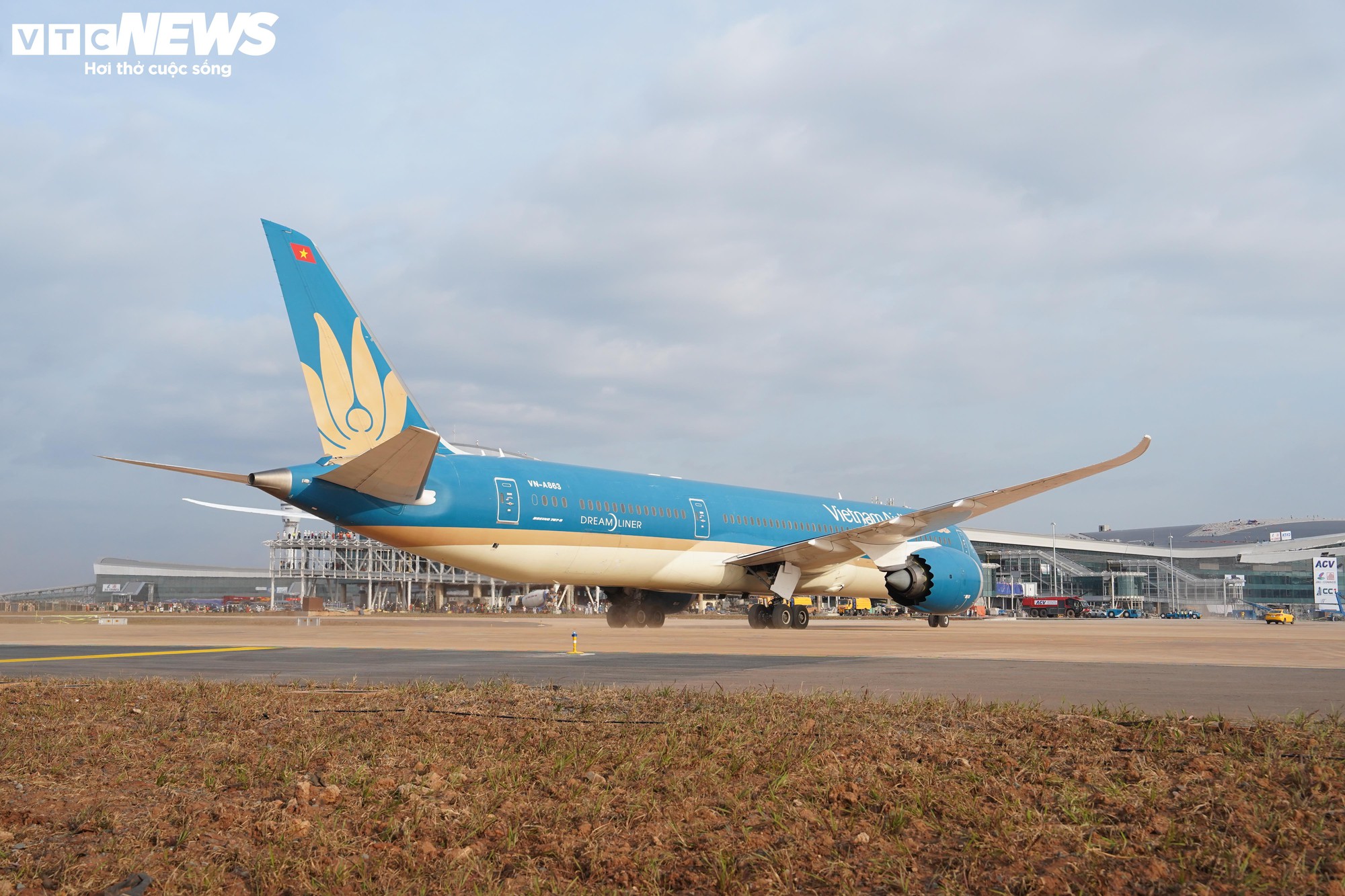 Tàu bay thực hiện chuyến bay là Boeing 787 của Vietnam Airlines là dòng máy bay thân rộng lớn nhất đang được Hãng Hàng không Quốc gia Việt Nam khai thác, với sức chứa tối đa khoảng 340 hành khách. Do là chuyến bay kỹ thuật, máy bay chỉ chở tổ bay và lực lượng kỹ thuật; sau khi hạ cánh tại Long Thành sẽ quay đầu trở lại Tân Sơn Nhất - TP.HCM.