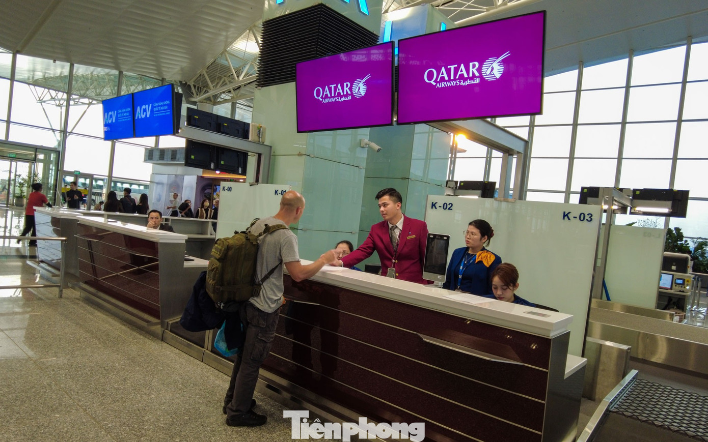 Quầy thủ tục của Qatar Airways vắng hoe, các chuyến bay bị hủy khiến khu vực check-in rơi vào cảnh đìu hiu.