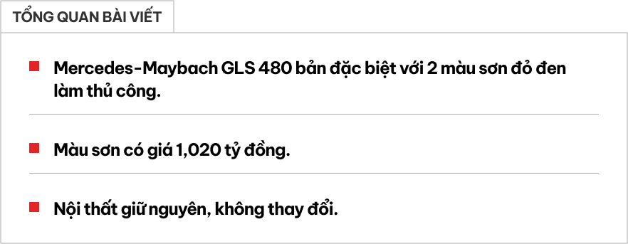 Theo đó, xe sở hữu lớp sơn ngoại thất 2 tông màu được sơn thủ công tại xưởng sơn chuyên biệt của Maybach. Lớp sơn này là sự kết hợp giữa màu đỏ Rubelitte Red ánh ruby ở thân trên và màu đen Obsidian Black ở phần dưới. Theo hãng xe Đức, việc thực hiện màu sơn này đòi hỏi sự chính xác tuyệt đối từ những người thợ lành nghề.