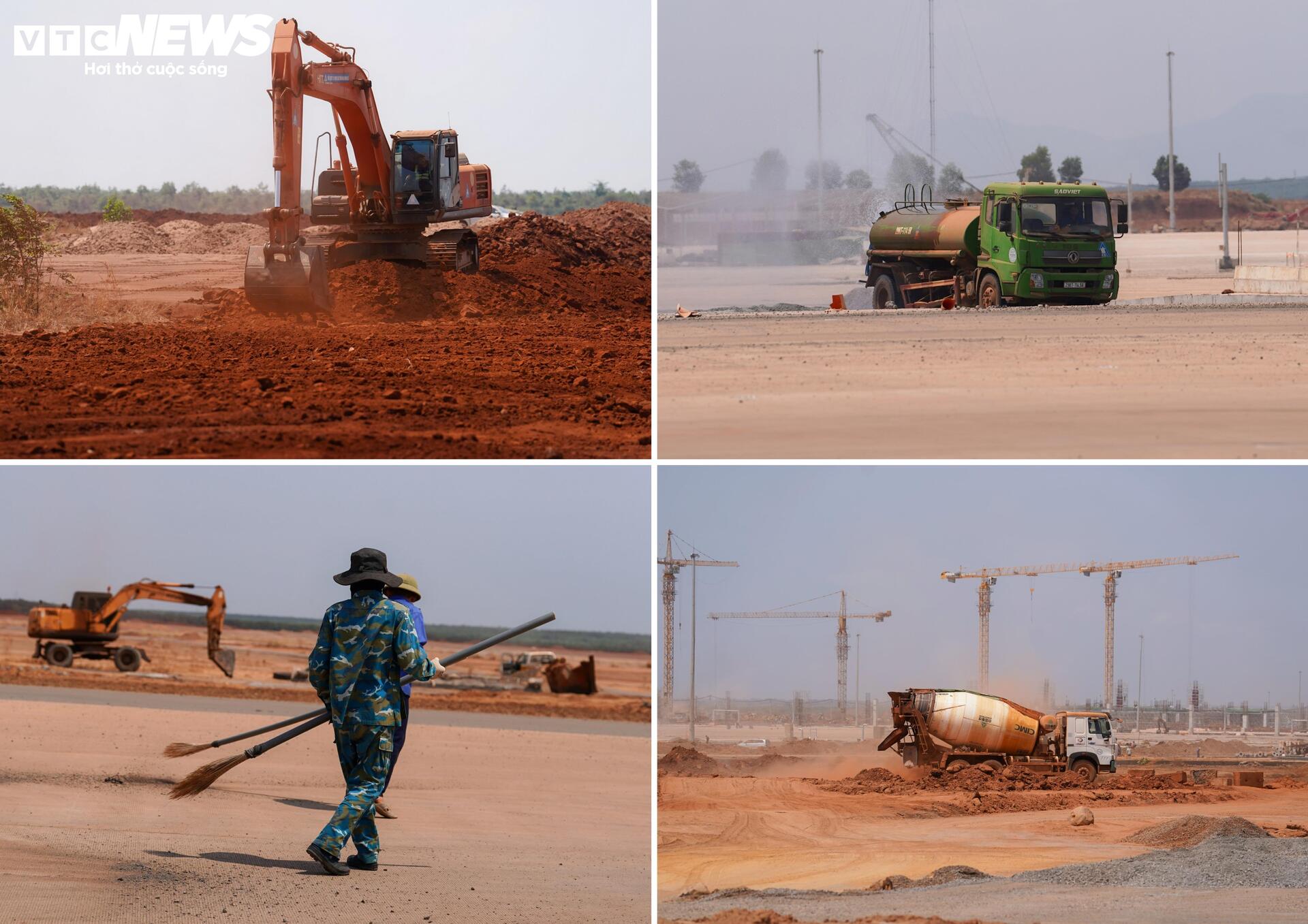 Hoạt động thi công chủ yếu tập trung vào các công việc như vận chuyển đất, san lấp mặt bằng, dọn dẹp khu vực thi công ngoài đường băng và khu vực nhà ga.