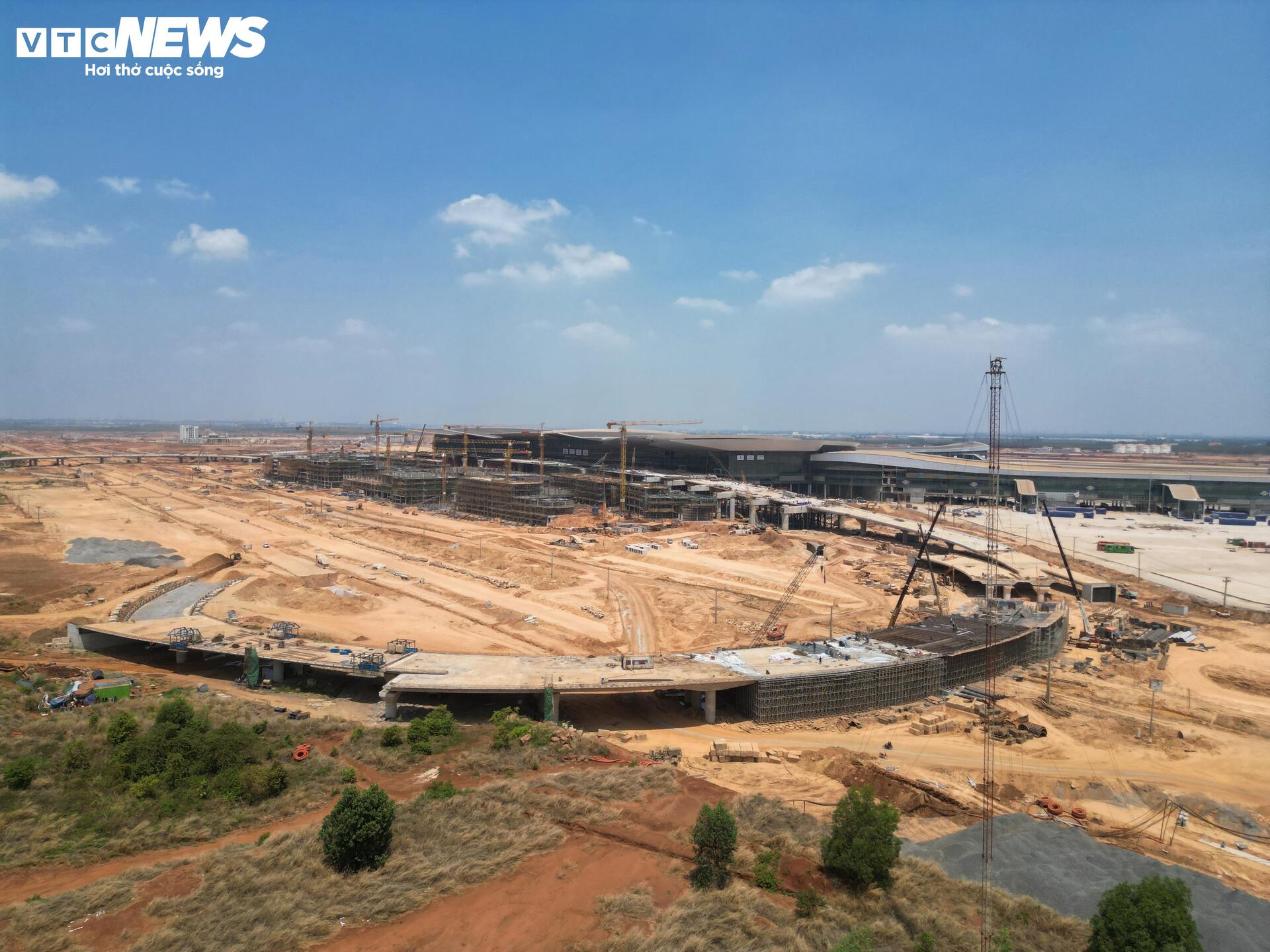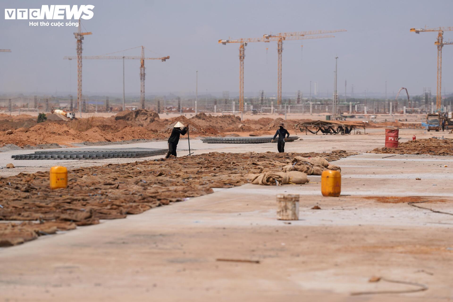 Cận cảnh sân bay Long Thành ngổn ngang, công nhân thưa thớt