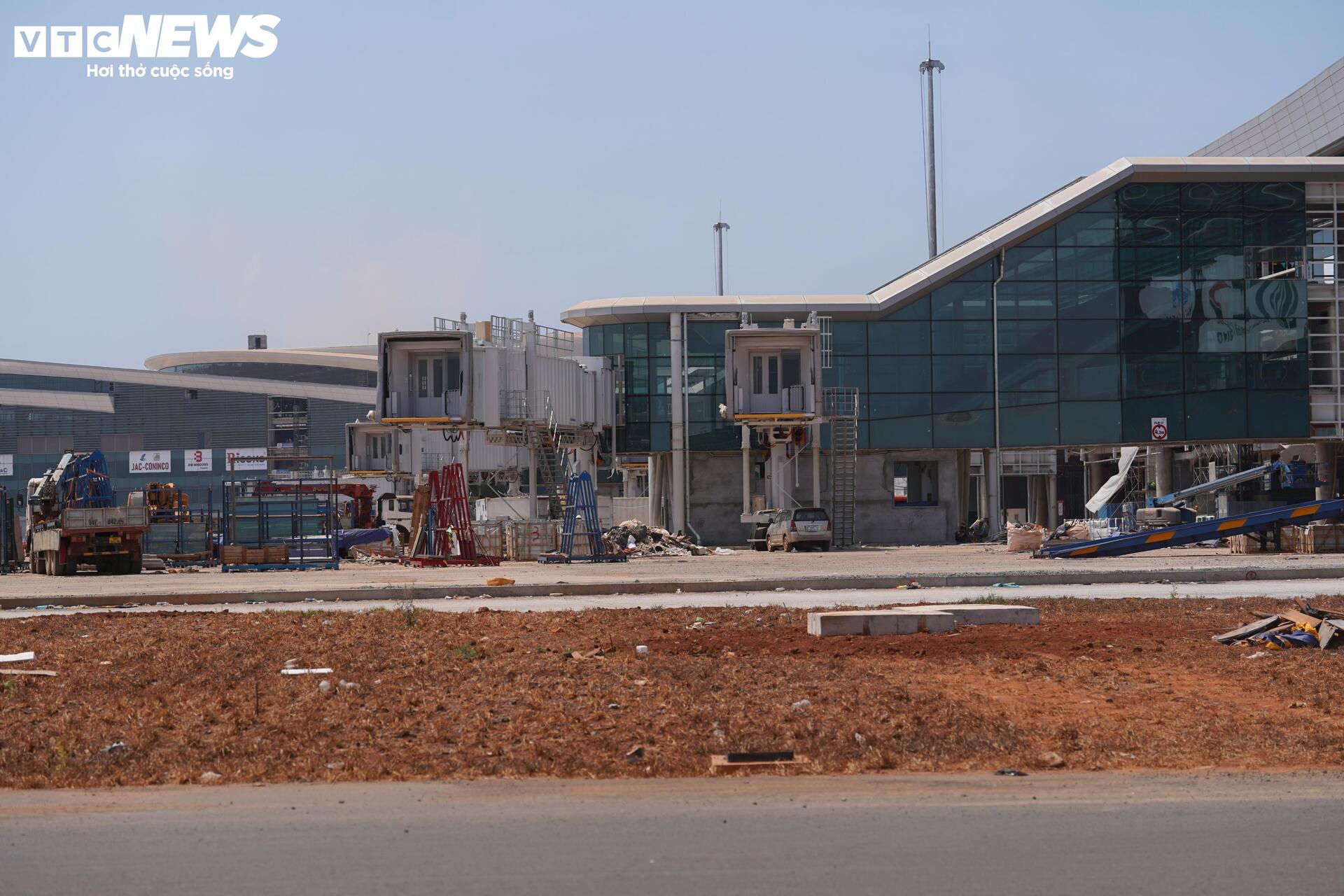 Tại khu vực phía trước nhà ga hành khách và các công trình phụ trợ như trụ sở cảng vụ, hải quan, khu vực xuất nhập cảnh, công an…, vật liệu xây dựng vẫn đang được tập kết phục vụ thi công, dẫn đến tình trạng còn tồn đọng đất đá và vật liệu. Bề mặt một số hạng mục xuất hiện lớp bụi đỏ do quá trình thi công kéo dài.