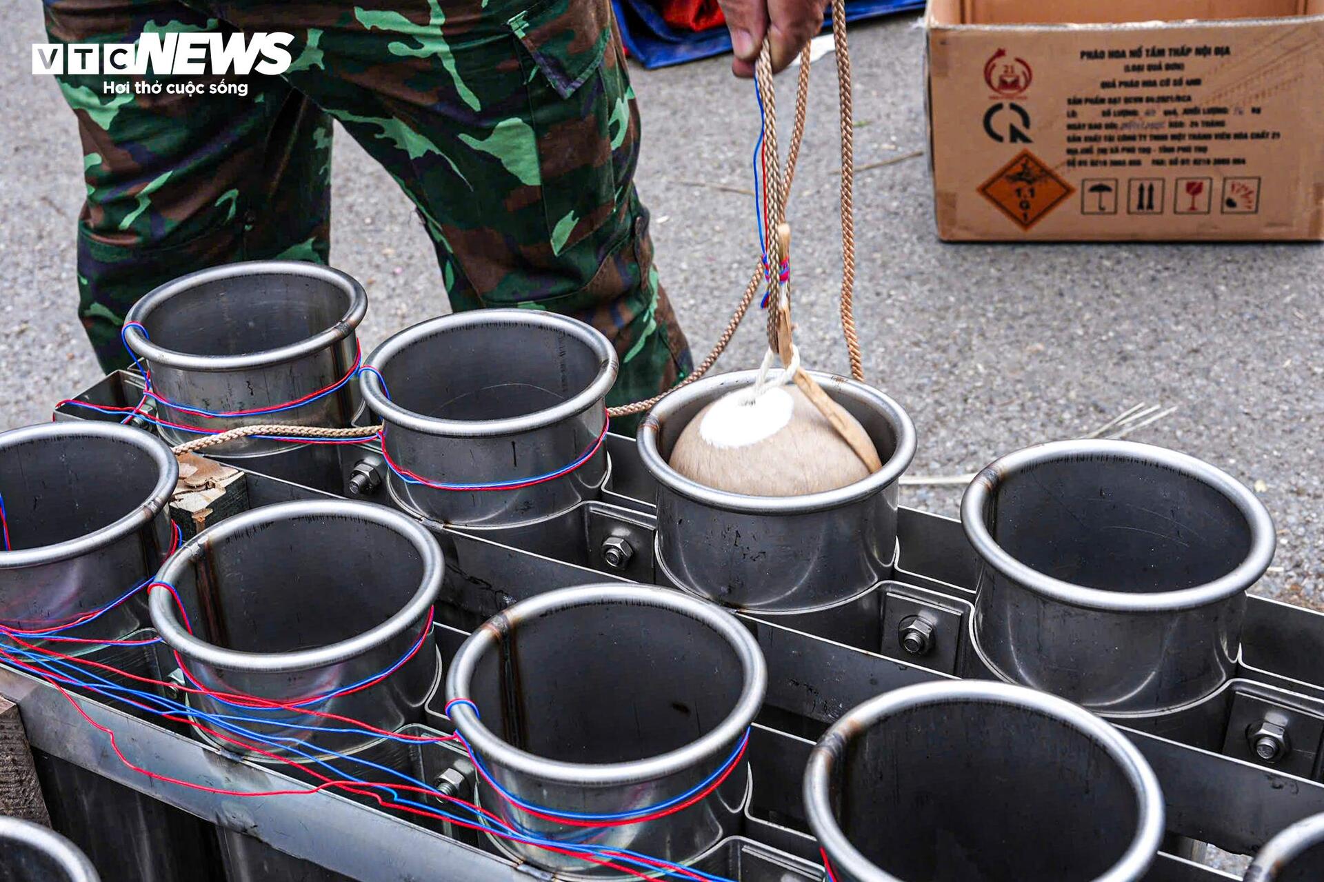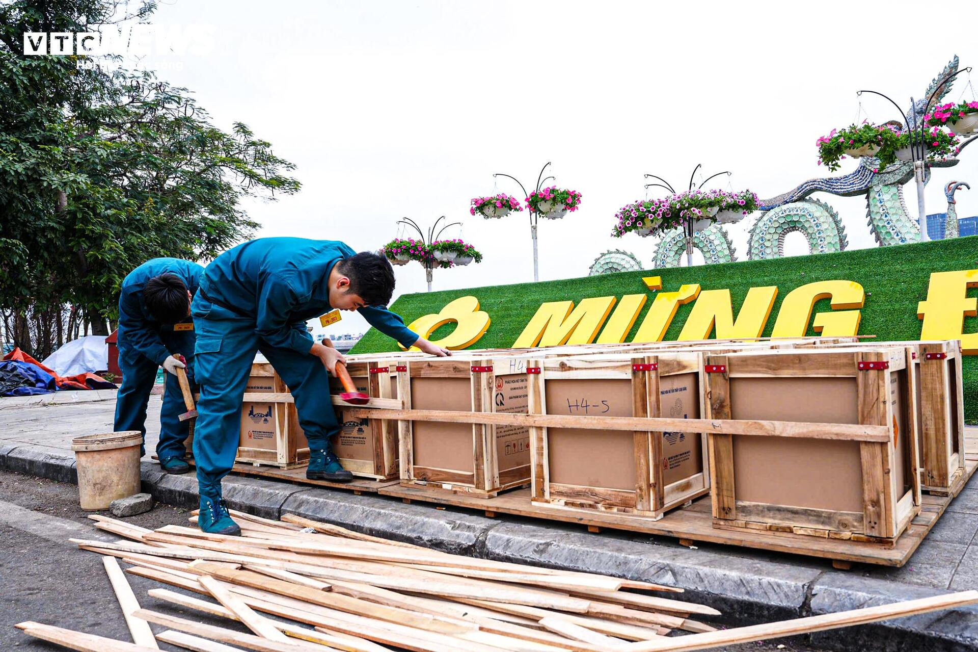 Sáng 28/1 (tức 29 Tết), tại khu vực đường Nguyễn Hoàng Tôn kéo dài (quận Tây Hồ, Hà Nội), lực lượng quân đội đã lắp đặt xong các giàn pháo hoa tầm cao, sẵn sàng đưa pháo vào ống phóng.