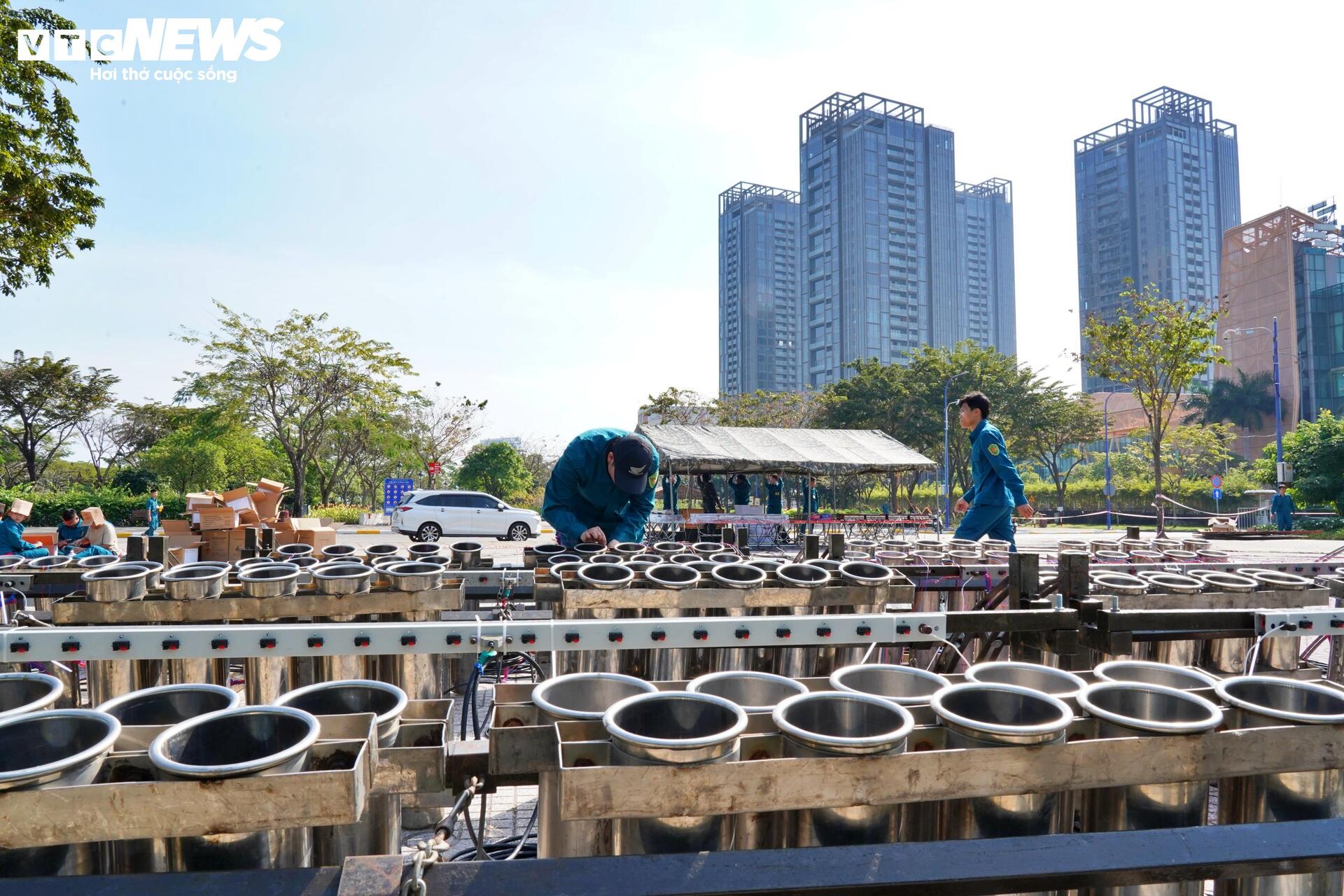 Tại công viên hầm vượt sông Sài Gòn, trưa 28/1 (tức 29 Tết), công tác chuẩn bị cho trận địa pháo hoa bao gồm 1.500 quả pháo hoa tầm cao, 30 giàn pháo hoa tầm thấp và giàn pháo hoa hỏa thuật đã hoàn thành và sẵn sàng khai hoả vào thời khắc chuyển giao năm Giáp Thìn 2024 và năm mới Ất Tỵ 2025.