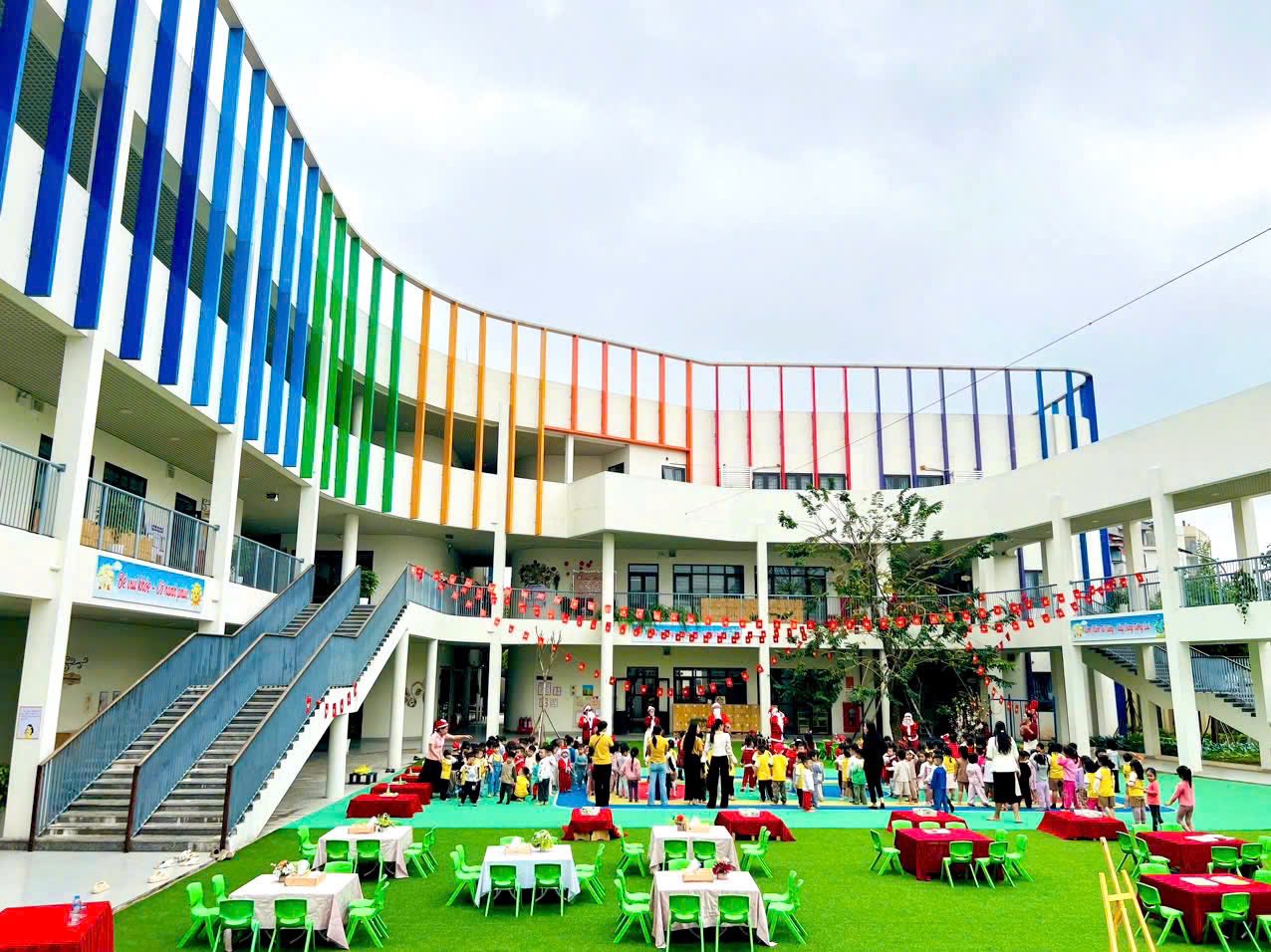 Ngoài ra trường còn có không gian vui chơi trải nghiệm ngoài trời để trẻ được hòa mình với thiên nhiên như sân bóng đá mini, bóng rổ, khu vui phát triển vận động, không gian thư giãn xanh….. Đồ dùng, trang thiết bị tiên tiến, hiện đại phục vụ đắc lực cho việc dạy và học nhằm phát triển tốt nhất cho trẻ.