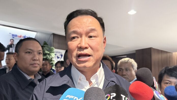 Thủ tướng Thái Lan Anutin Charnvirakul tại trụ sở của Đảng Bhumjaithai. Ảnh: Khaosod English