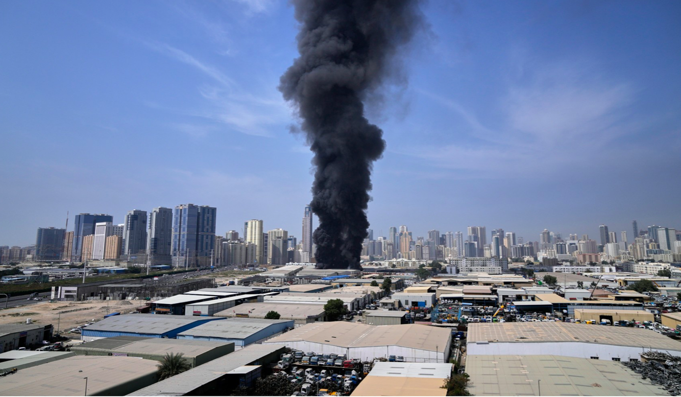 Cột khói ở một thành phố của UAE sau đòn tấn công của Iran. (Ảnh: AP)