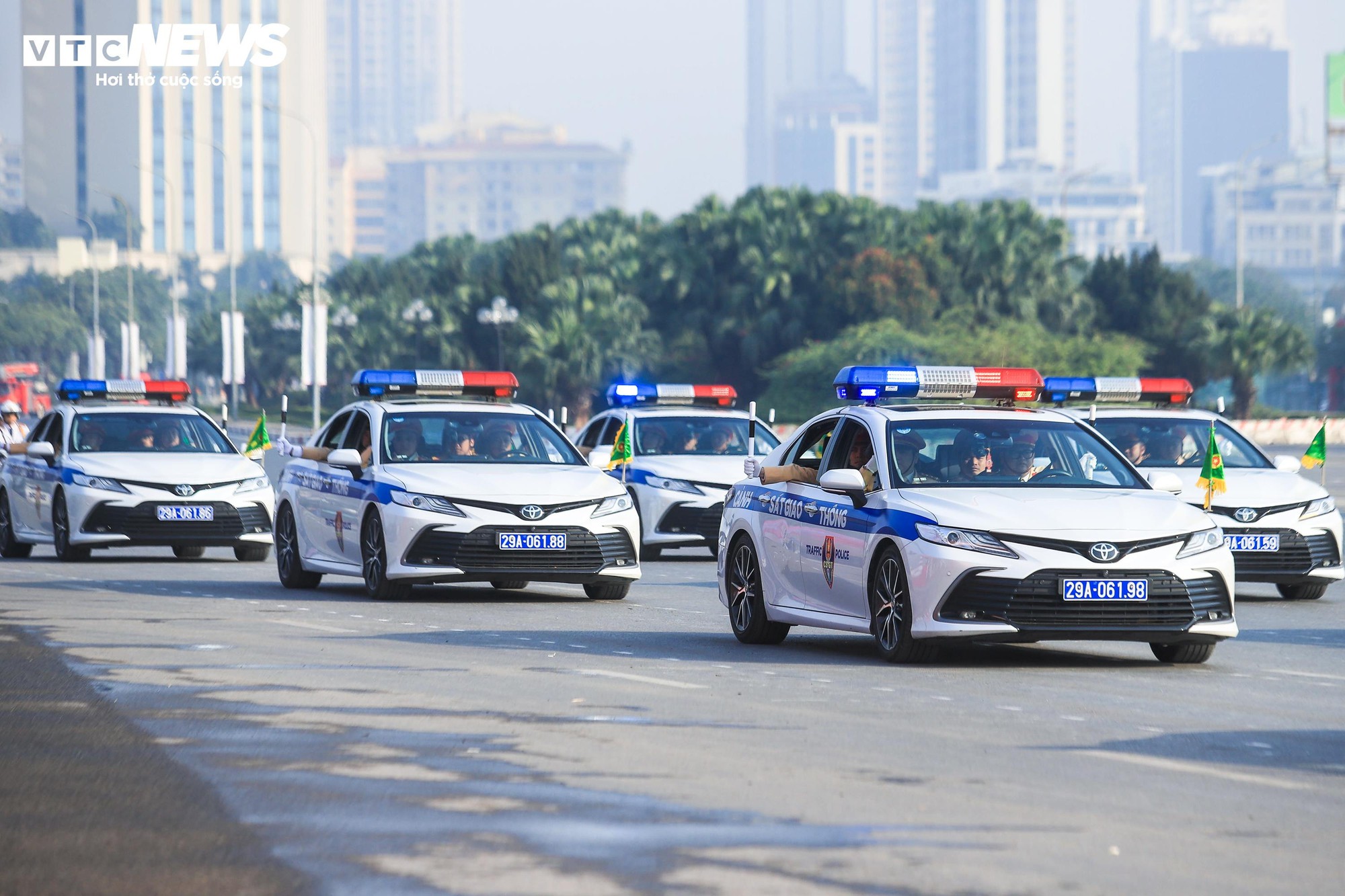 Trong phần diễu hành phương tiện và biểu dương lực lượng, xe chỉ huy giao thông dẫn đoàn mở đầu đội hình. Đây là phương tiện chuyên dụng của lực lượng Cảnh sát giao thông, được sử dụng trong nhiệm vụ tuần tra cơ động, bảo đảm trật tự, an toàn giao thông và dẫn đường cho các đoàn lãnh đạo trong nước, khách quốc tế tại các sự kiện chính trị, ngoại giao quan trọng.