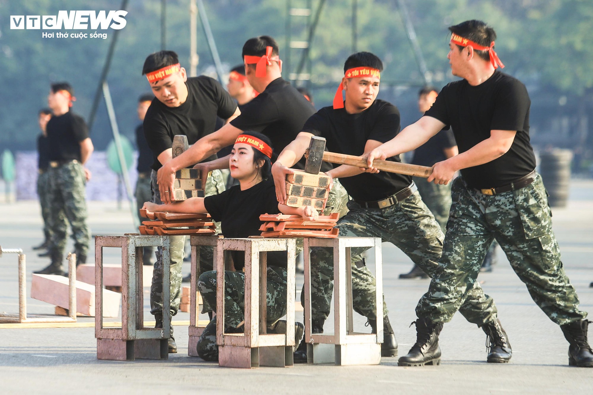 Điểm nhấn của buổi diễn tập là phần trình diễn nội công, công phá của cán bộ, chiến sĩ Đoàn Cảnh sát đặc nhiệm số 1, Bộ Tư lệnh Cảnh sát cơ động.